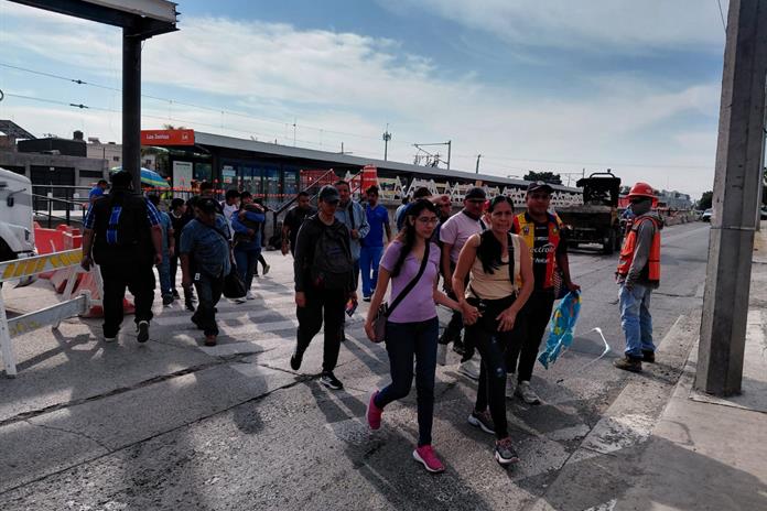 Cruces improvisados, accesos inconclusos y personal de obra dando paso a los peatones forman parte del panorama que aún enfrentan los usuarios de la Línea 4 del Tren Ligero de Tlajomulco, en su segundo día de operación.